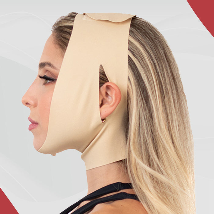 This postoperative garment is ideal for a successful recovery from chin or face surgery trauma.